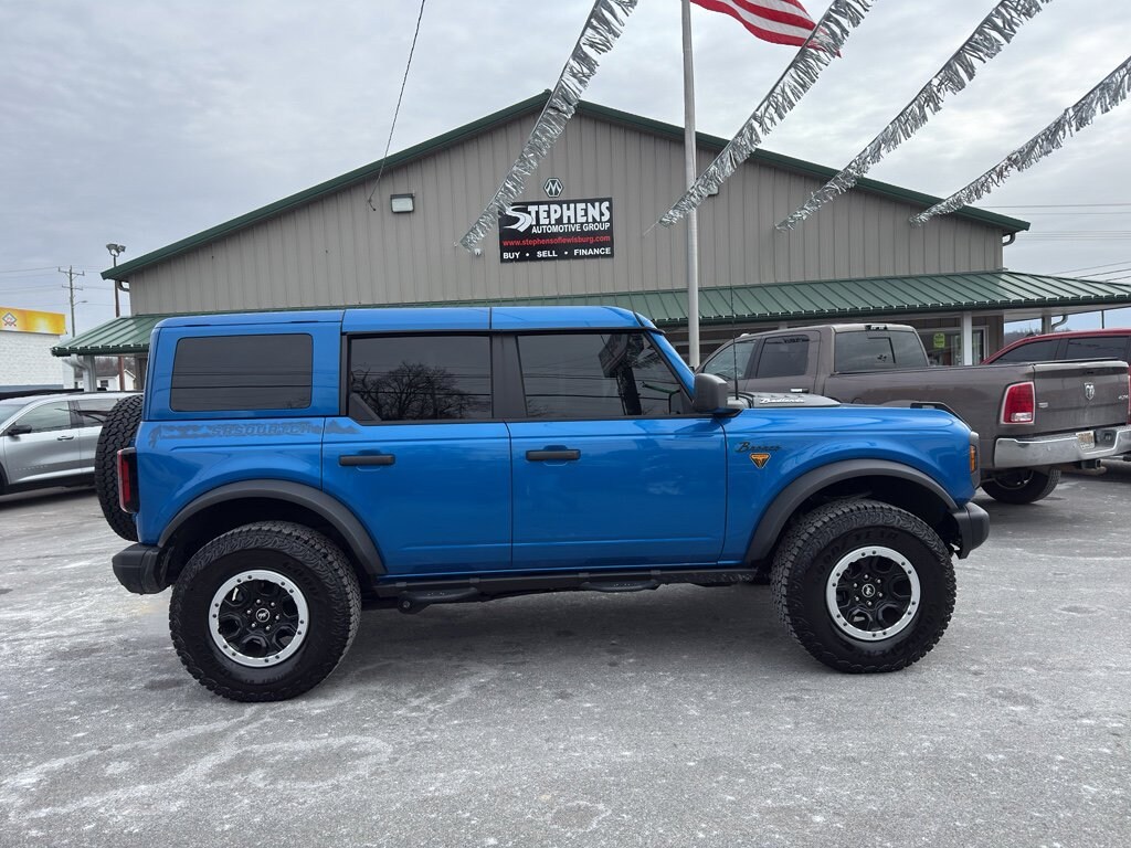 You'll never again be lost in a crowded city or a country region with the navigation system on this model. This unit features a hands-free Bluetooth phone system. This model comes equipped with Android Auto for seamless smartphone integration on the road. An off-road package is equipped on the vehicle. This Ford Bronco warns of approaching vehicles with Cross-Traffic Alert. Keep your hands warm all winter with a heated steering wheel in the vehicle . This 1/2 ton suv keeps you comfortable with Auto Climate. See what's behind you with the back up camera on this Ford Bronco. This vehicle offers Apple CarPlay for seamless connectivity. The rear parking assist technology on this 1/2 ton suv will put you at ease when reversing. The system alerts you as you get closer to an obstruction. This vehicle shines with an exquisite blue finish. When you encounter slick or muddy roads, you can engage the four wheel drive on this vehicle and drive with confidence.
