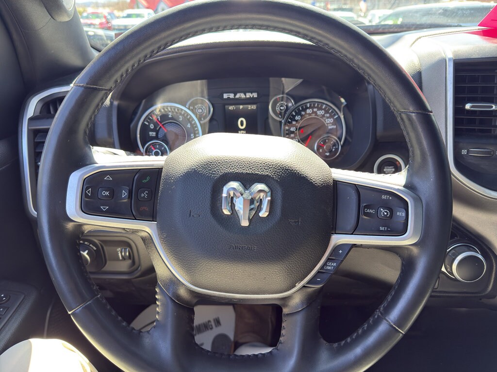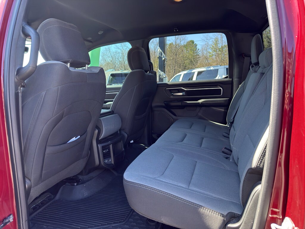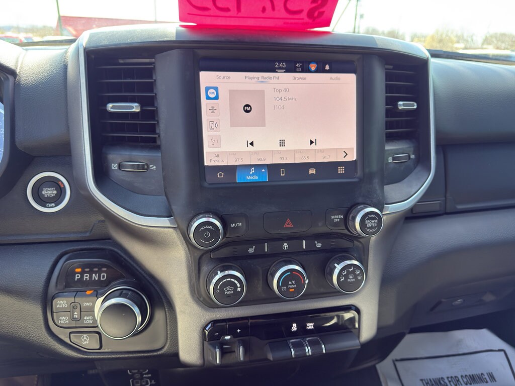 Quick Order Package 27Z Big Horn: Big Horn Badge. Big Horn Level 1 Equipment Group: Google Android Auto; Bluetooth Handsfree Phone and Audio; USB Host Flip; Rear Window Defroster; Integrated Center Stack Radio; Rear View Auto Dim Mirror; For Details. Visit DriveUconnect.com; For More Info. Call 800-643-2112; Rear Power Sliding Window; Rear Dome with On/off Switch Lamp; Front Fog Lamps; Connectivity - US/Canada; Glove Box Lamp; 4G LTE Wi-Fi Hot Spot; GPS Antenna Input; Exterior Mirrors with Heating Element; Auto Dim Exterior Driver Mirror; Heated Front Seats; Uconnect 5 W Radio with 8.4" Display; Heated Steering Wheel; 8.4" Touchscreen Display; Black Exterior Mirrors; Class IV Receiver Hitch; Black Premium Power Mirrors; Apple CarPlay; Big Horn Instrument Panel Badge; SiriusXM Satellite Radio; Exterior Mirrors with Supplemental Signals; Exterior Mirrors Courtesy Lamps; Passenger Sun Visor with Illuminated Mirror; Electric Shift on Demand Transfer Case; Power-Folding Mirrors; 2nd Row in Floor Storage Bins; Convex Wide-Angle Exterior Mirror Insert. Quick Order Package 23Z Big Horn. 20" X 9" Aluminum Chrome Clad Wheels. Trailer Brake Control. Remote Start System. Delmonico Red Pearlcoat. Delmonico Red Pearlcoat. MOPAR Front and Rear Rubber Floor Mats. Rear Underseat Compartment Storage. **Equipment listed is based on original vehicle build and subject to change. Please confirm the accuracy of the included equipment by calling the dealer prior to purchase.**